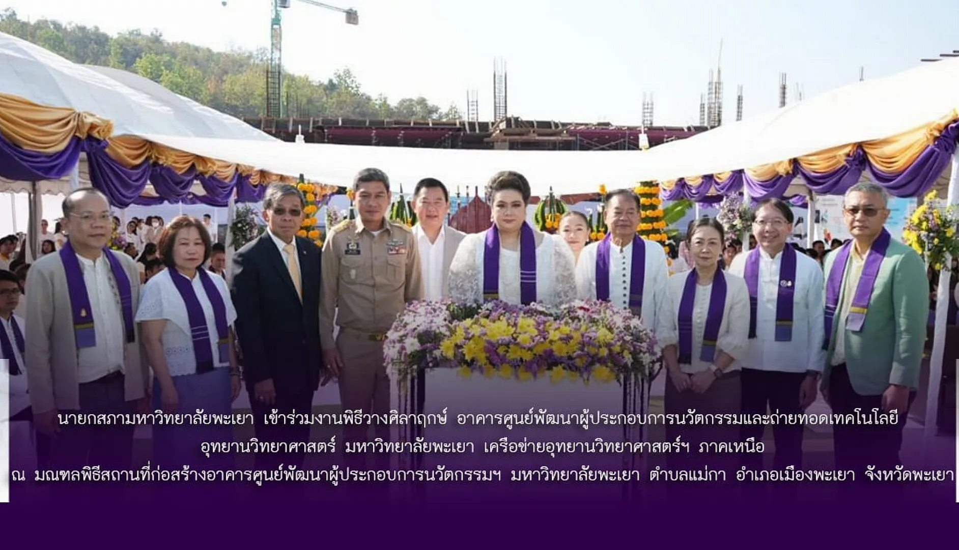 เมื่อวันที่ 14 มีนาคม 2568 เวลา 09.00 น. สถาบันนวัตกรรมและถ่ายทอดเทคโนโลยี มหาวิทยาลัยพะเยา จัดพิธีวางศิลาฤกษ์อาคารศูนย์พัฒนาผู้ประกอบการนวัตกรรมและถ่ายทอดเทคโนโลยี อุทยานวิทยาศาสตร์ มหาวิทยาลัยพะเยา โดยได้รับเกียรติจาก นางสาวศุภมาส อิสรภักดี รัฐมนตรีว่าการกระทรวงการอุดมศึกษา วิทยาศาสตร์ วิจัยและนวัตกรรม (อว.) ร่วมพิธีวางศิลาฤกษ์อาคารศูนย์พัฒนาผู้ประกอบการนวัตกรรมและถ่ายทอดเทคโนโลยี อุทยานวิทยาศาสตร์ มหาวิทยาลัยพะเยา โดยมี ศาสตราจารย์พิเศษ อรรถพล ใหญ่สว่าง นายกสภามหาวิทยาลัยพะเยา รองศาสตราจารย์ ดร.สุภกร พงศบางโพธิ์ อธิการบดีมหาวิทยาลัยพะเยา นายรัฐพล นราดิสร ผู้ว่าราชการจังหวัดพะเยา คณะผู้บริหาร คณาจารย์ นักวิจัย ผู้ประกอบการ และเครือข่ายพันธมิตรภาครัฐและเอกชน เข้าร่วมพิธี ณ มณฑลพิธีสถานที่ก่อสร้างอาคารศูนย์พัฒนาผู้ประกอบการนวัตกรรมฯ มหาวิทยาลัยพะเยา ตำบลแม่กา อำเภอเมืองพะเยา จังหวัดพะเยา
