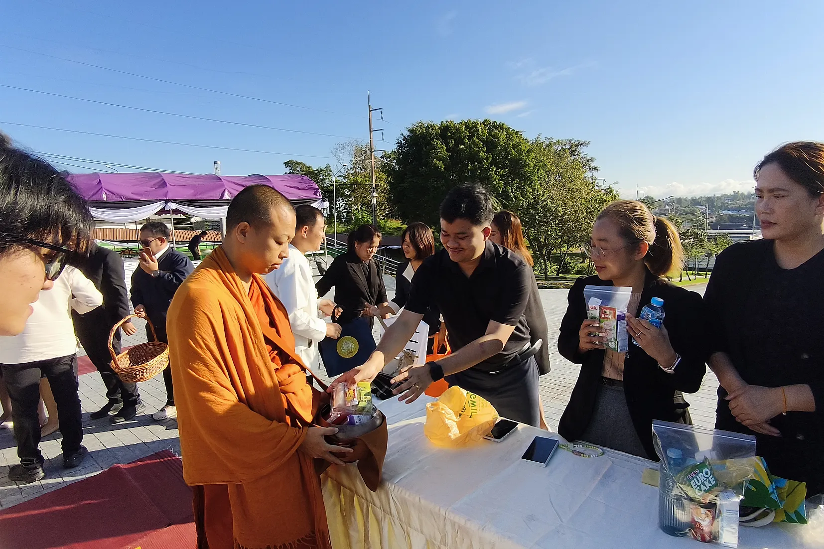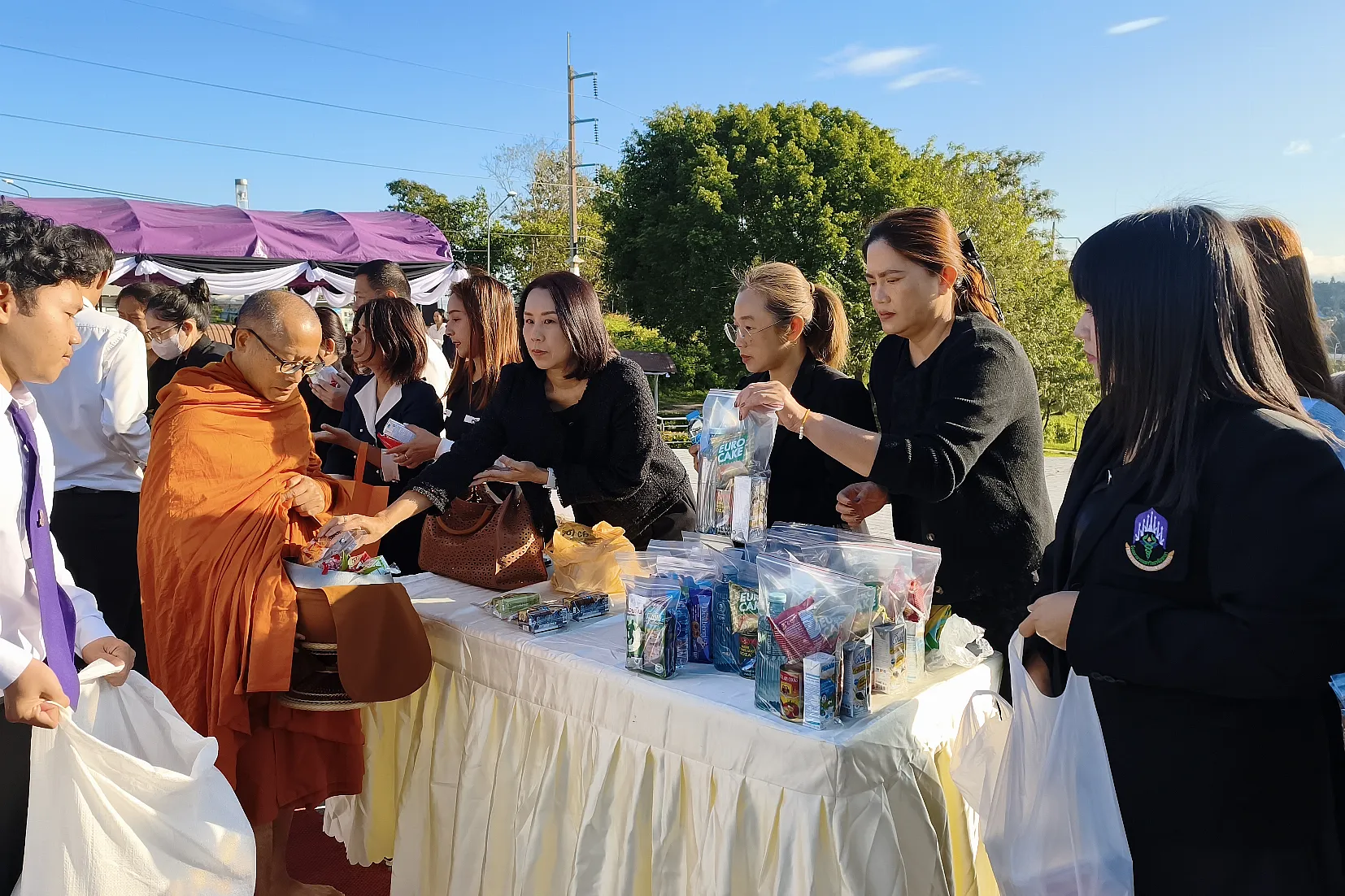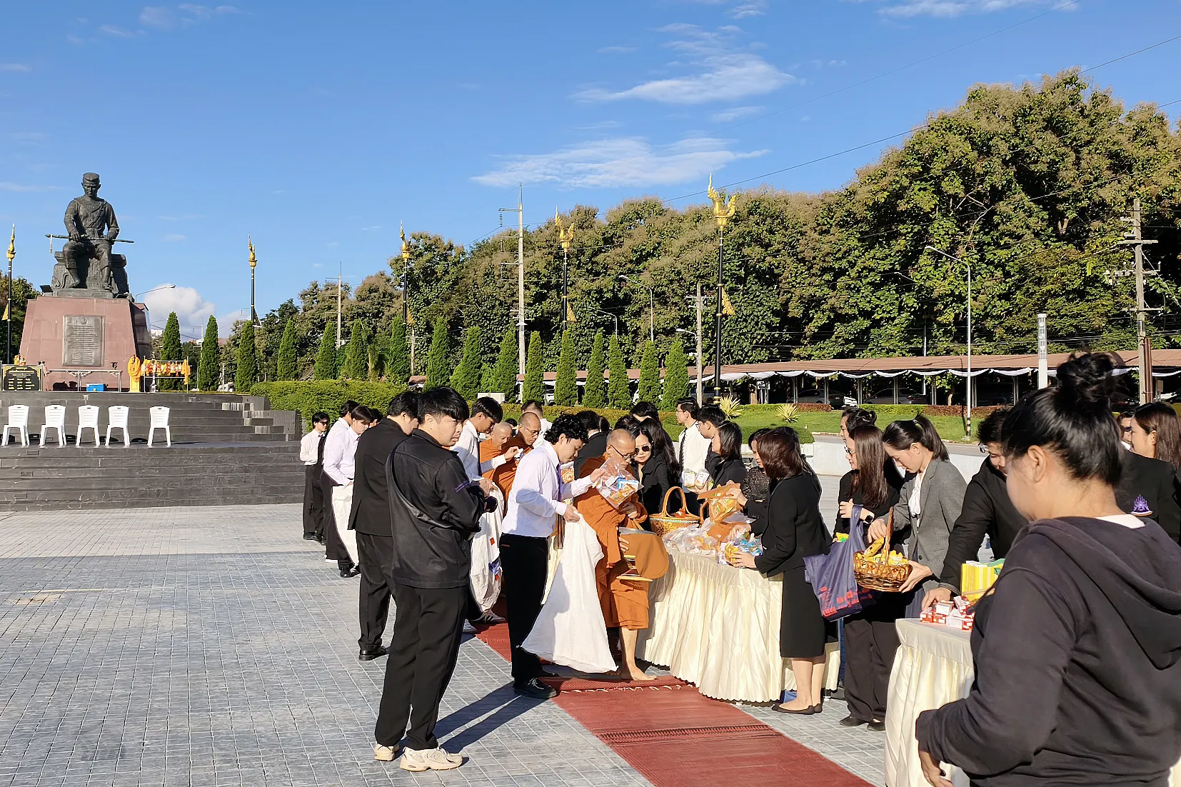 วันศุกร์ที่ 21 พฤศจิกายน 2568 เวลา 07.00 น. นางสาวกัลวรา ภูมิลา ผู้อำนวยการสำนักงานสภามหาวิทยาลัยพะเยา พร้อมด้วยบุคลากรสำนักงานสภามหาวิทยาลัยพะเยา เข้าร่วมพิธีทำบุญตักบาตร เพื่อถวายเป็นพระราชกุศลแด่ สมเด็จพระนางเจ้าสิริกิติ์ พระบรมราชินีนาถ พระบรมราชชนนีพันปีหลวง ณ ลานพระบรมราชานุสาวรีย์สมเด็จพระนเรศวรมหาราช มหาวิทยาลัยพะเยา จัดโดยศูนย์ศิลปะและวัฒนธรรมล้านนา ร่วมกับ คณะรัฐศาสตร์และสังคมศาสตร์ คณะพยาบาลศาสตร์ และคณะแพทยศาสตร์ โดยมีผู้บริหาร บุคลากร นิสิต และประชาชนทั่วไป เข้าร่วมเป็นจำนวนมาก