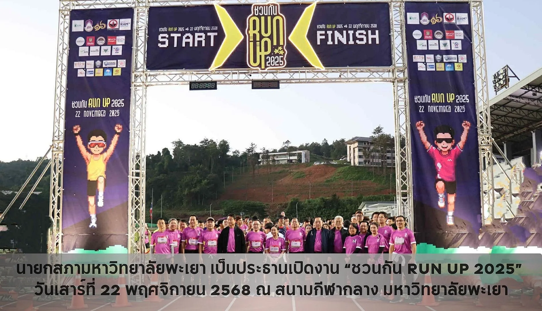 วันเสาร์ที่ 22 พฤศจิกายน 2568 ศาสตราจารย์พิเศษอรรถพล ใหญ่สว่าง นายกสภามหาวิทยาลัยพะเยา เป็นประธานเปิดงาน “ชวนกัน RUN UP 2025” ชิงถ้วยพระราชทาน สมเด็จพระกนิษฐาธิราชเจ้า กรมสมเด็จพระเทพรัตนราชสุดา ฯ สยามบรมราชกุมารี จัดโดยคณะกรรมการส่งเสริมกิจการมหาวิทยาลัยพะเยา ณ สนามกีฬากลาง มหาวิทยาลัยพะเยา