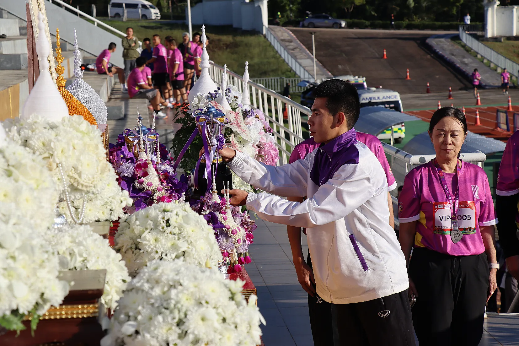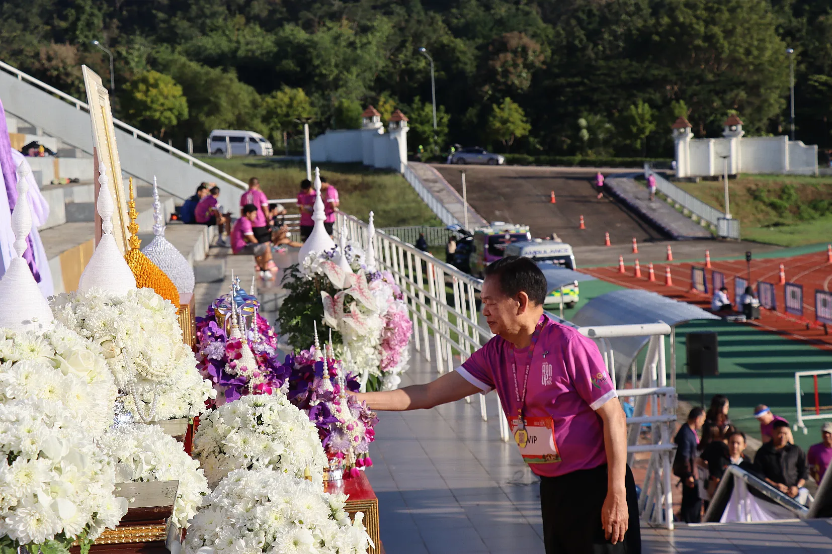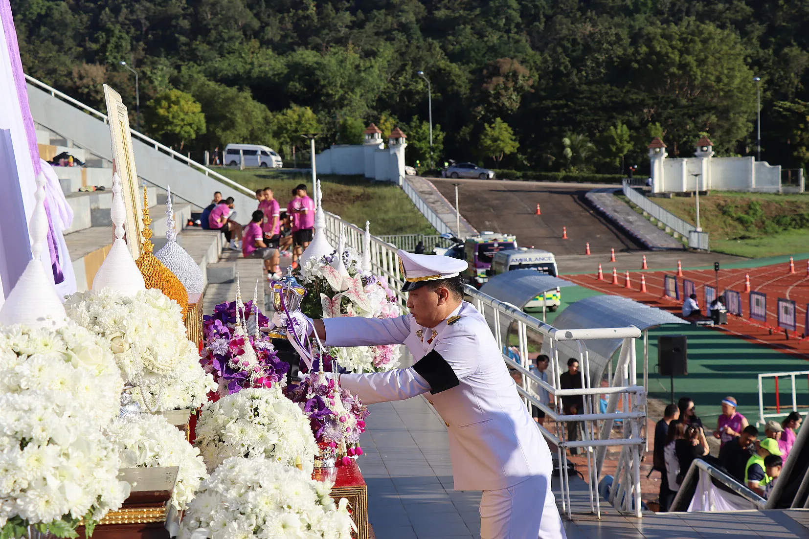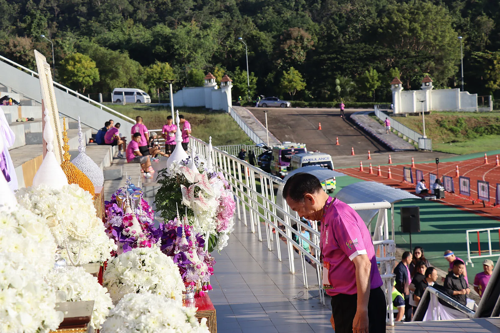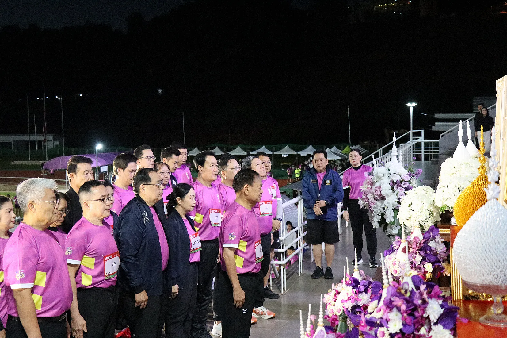 ก่อนเริ่มงานนายกสภามหาวิทยาลัย พร้อมด้วยอธิการบดี กรรมการสภามหาวิทยาลัย ผู้ทรงคุณวุฒิ กรรมการส่งเสริมกิจการมหาวิทยาลัย ผู้บริหาร บุคลากร นิสิต และนักกีฬา ร่วมกันยืนสงบนิ่ง เพื่อแสดงความอาลัยและน้อมสำนึกในพระมหากรุณาธิคุณแด่สมเด็จพระนางเจ้าสิริกิติ์ พระบรมราชินีนาถ พระบรมราชชนนีพันปีหลวง