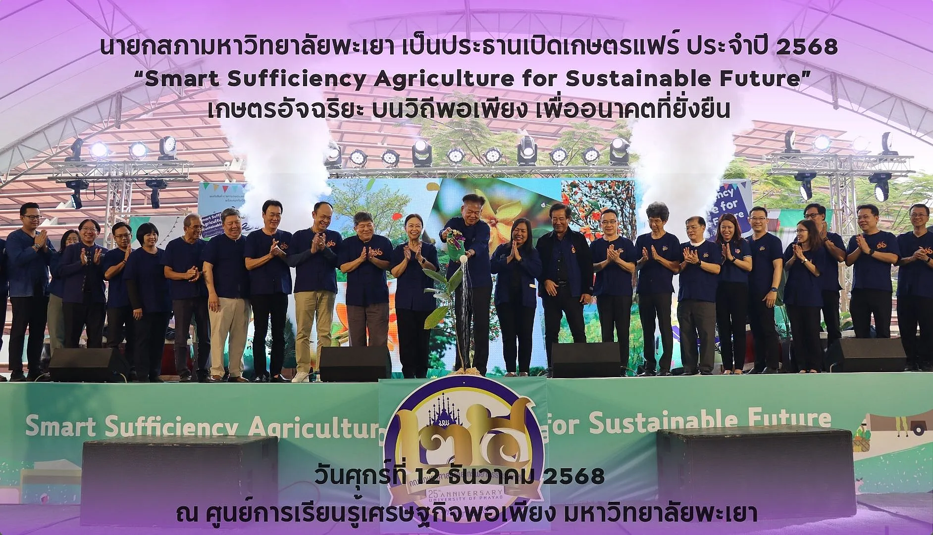 วันศุกร์ที่ 12 ธันวาคม 2568 เวลา 16.00 น. ศาสตราจารย์พิเศษอรรถพล ใหญ่สว่าง นายกสภามหาวิทยาลัยพะเยา เป็นประธานเปิดงานเกษตรแฟร์ ประจำปี 2568 "Smart Sufficiency Agriculture for Sustainable Future (เกษตรอัจฉริยะ บนวิถีพอเพียง เพื่ออนาคตที่ยั่งยืน)" พร้อมด้วยกรรมการสภามหาวิทยาลัยผู้ทรงคุณวุฒิ ซึ่งงานดังกล่าวได้จัดขึ้น ระหว่างวันที่ 11 – 13 ธันวาคม 2568 โดยคณะเกษตรศาสตร์และทรัพยากรธรรมชาติ ณ ศูนย์การเรียนรู้เศรษฐกิจพอเพียง มหาวิทยาลัยพะเยา