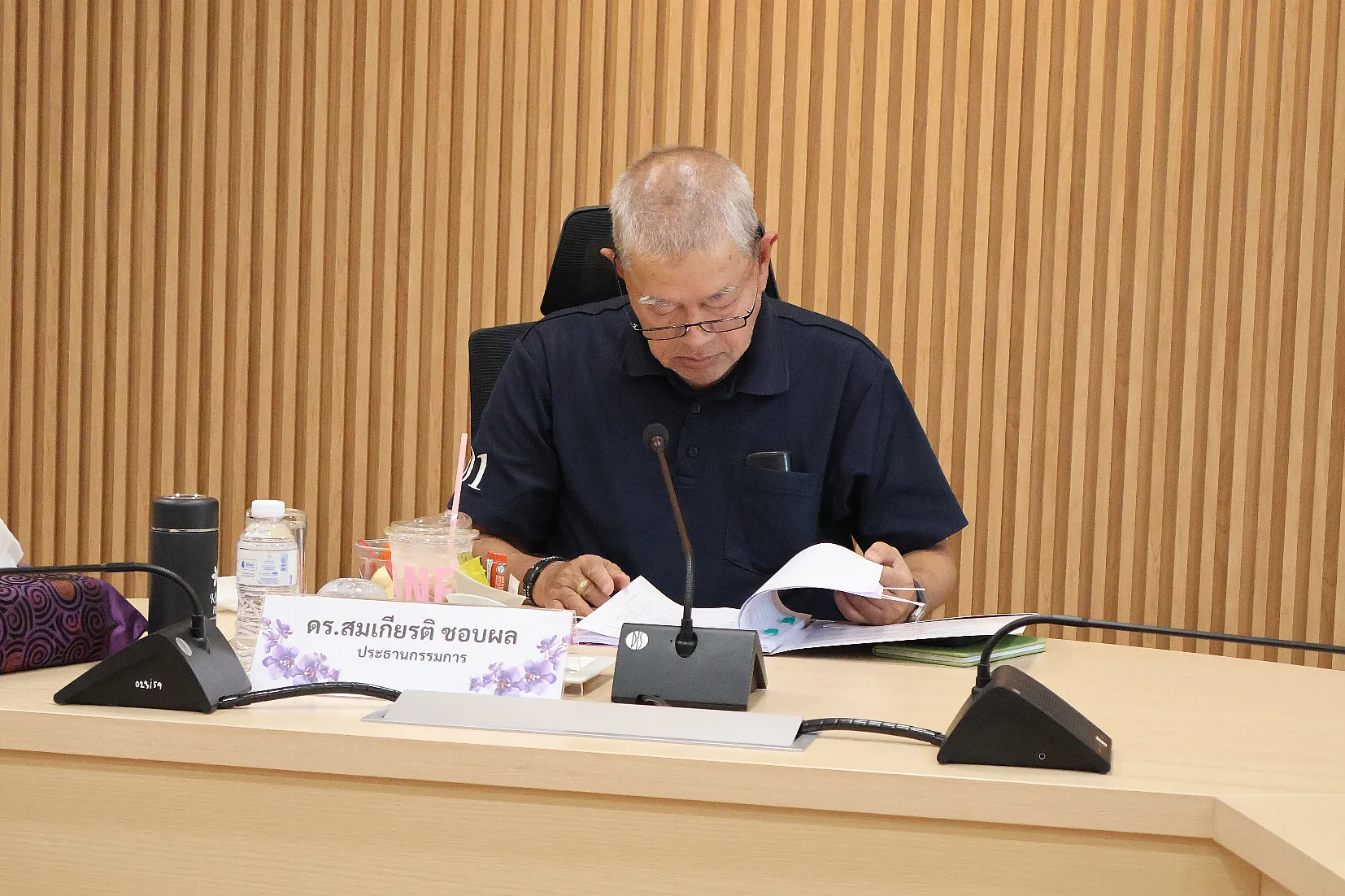 โดยมี ดร.สมเกียรติ ชอบผล อุปนายกสภามหาวิทยาลัยพะเยา เป็นประธานกรรมการ รองศาสตราจารย์ ดร.สุภกร พงศบางโพธิ์ อธิการบดีมหาวิทยาลัยพะเยา และรองศาสตราจารย์กันย์กัญญา ใจการวงค์สกุล กรรมการสภามหาวิทยาลัยพะเยา ประเภทคณาจารย์ประจำ เป็นกรรมการ นายประฐมพงษ์ ทองรอด รองอธิการบดีฝ่ายกฏหมายและทรัพย์สิน เป็นผู้ร่วมชี้แจง นางสาวกัลวรา ภูมิลา ผู้อำนวยการสำนักงานสภามหาวิทยาลัยพะเยา เป็นเลขานุการ และนางสุทธาทิพย์ เณรจาที หัวหน้างานกิจการพิเศษ สำนักงานสภามหาวิทยาลัยพะเยา เป็นผู้ช่วยเลขานุการ