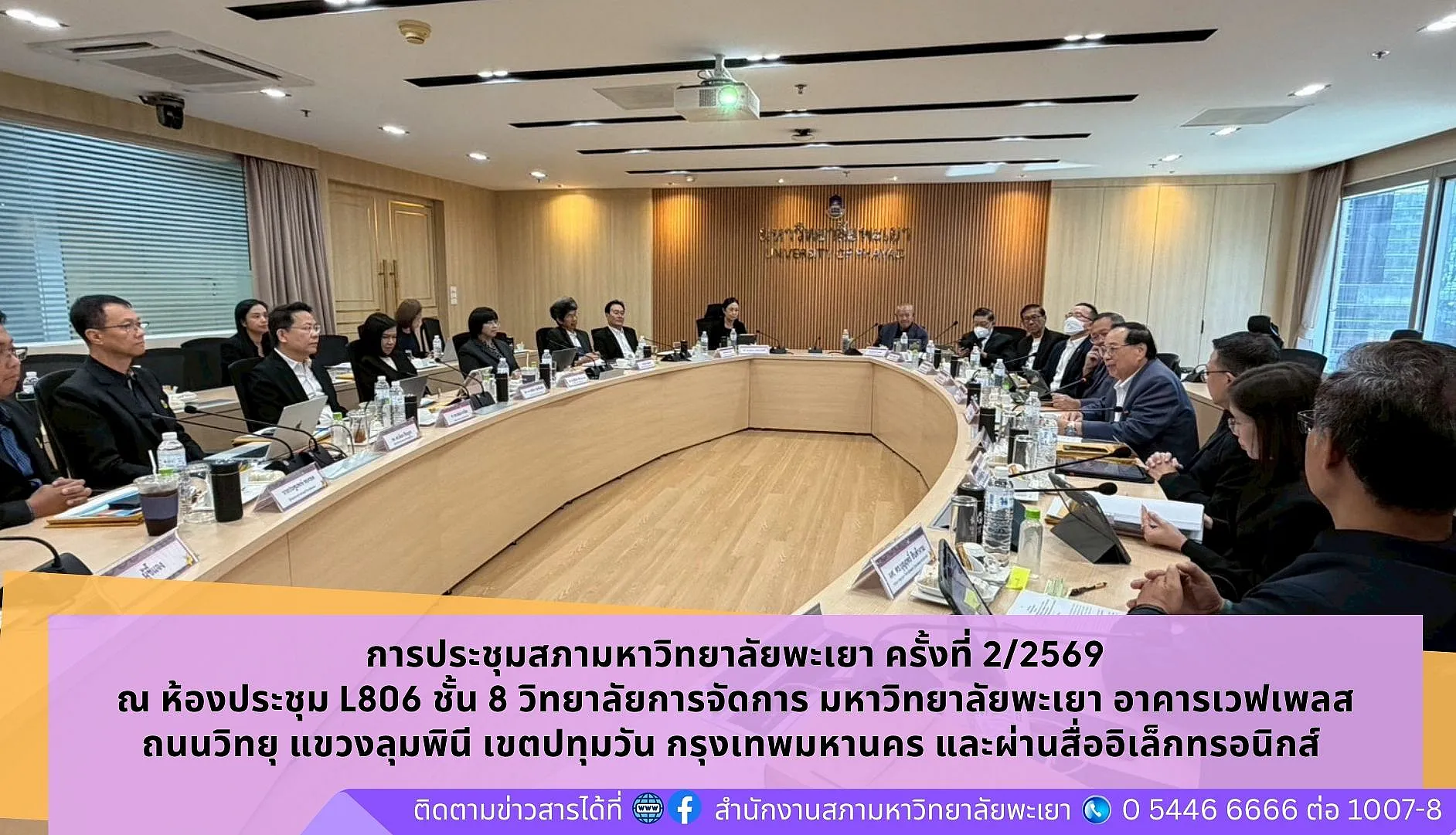 เมื่อวันเสาร์ที่ 28 กุมภาพันธ์ 2569 ศาสตราจารย์พิเศษอรรถพล ใหญ่สว่าง นายกสภามหาวิทยาลัยพะเยา เป็นประธานการประชุมสภามหาวิทยาลัยพะเยา ครั้งที่ 2/2569 ณ ห้องประชุม L806 ชั้น 8 วิทยาลัยการจัดการ มหาวิทยาลัยพะเยา อาคารเวฟเพลส ถนนวิทยุ แขวงลุมพินี เขตปทุมวัน กรุงเทพมหานคร และผ่านสื่ออิเล็กทรอนิกส์